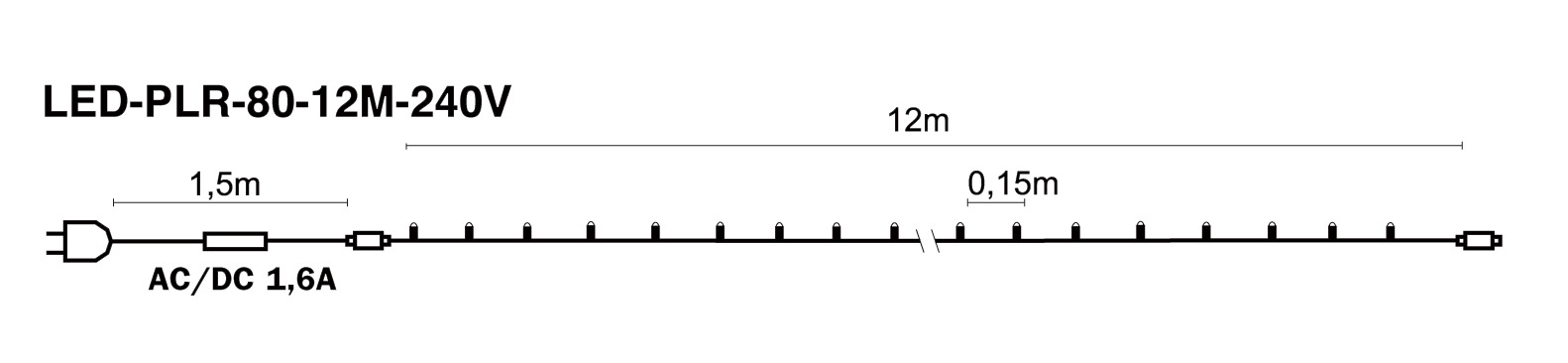 Punane LED-valguskett, 12 meetrit pikk ja 80 ereda LED-lambiga. Sobib kasutamiseks nii sise- kui välistingimustes (IP44) ning tekitab intensiivse punase valguse. Tumeroheline kaabel sobib hästi jõulukuuse või aiakaunistustega. Valguskette saab ühendada kuni 20 komplekti. Kettide ühendamiseks vajalik vahejuhe ei ole kaasas (müüakse eraldi). Lisakette tuleb soetada eraldi.