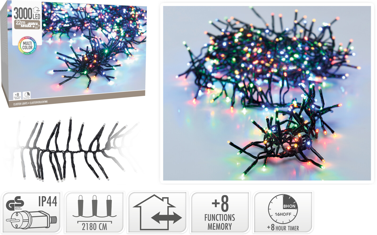 Tõeliselt muljetavaldav valguskett, millel on lausa 3000 värvilist LED-tuld! Tänu tihedale ja ruumilisele valgusjaotusele pakub see kett eriti säravat ning sügavat valgust, mis sobib ideaalselt nii pidulikuks siseviimistluseks kui ka suuremate õuealade dekoreerimiseks. Peaaegu 22 meetri pikkune valgustatud osa katab julgelt nii aiad, terrassid kui ka majafassaadid.