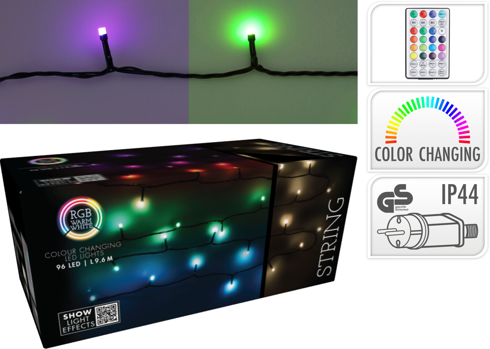Loo oma aeda, terrassile või rõdule värvikirev valgusmaailm – see 96 RGBW LED-iga valguskett pakub erksaid värvivahetusrežiime ja sooja valget valgust. Ideaalne nii pidustusteks kui ka igapäevaseks dekoratsiooniks. Komplekti kuuluv kaugjuhtimispult võimaldab valida sobiva valgusmängu ja ajastuse vaid ühe nupuvajutusega. IP44 kaitseklassiga valguskett sobib kasutamiseks õues aastaringselt.