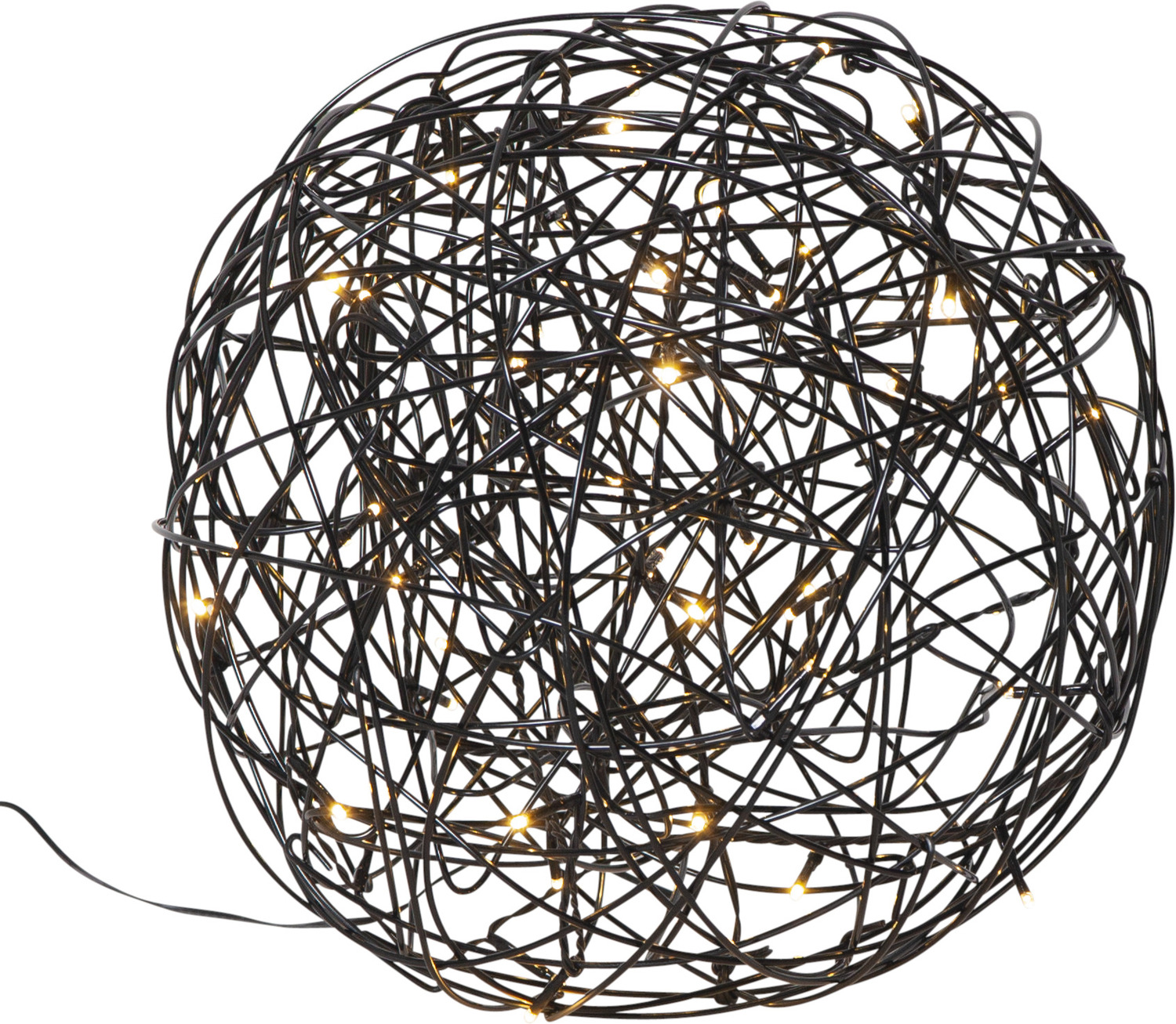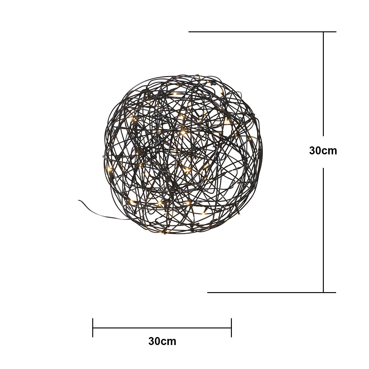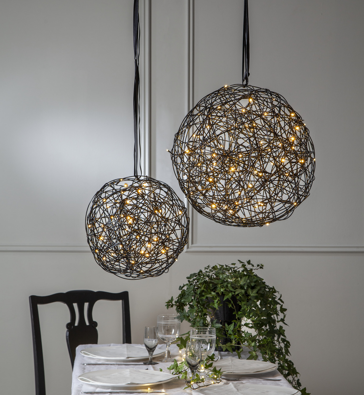 Kaunis musta tooniga dekoratiivpall, mis on valmistatud vastupidavast alumiiniumvõrgust. Palli sees paikneb soe valge LED-valguskett, mis loob õdusa valgusefekti ja toob nii sise- kui välisruumi modernse, kuid hubase ilme. Disain on loodud Rootsi disaineri Charlotte Falcki poolt.