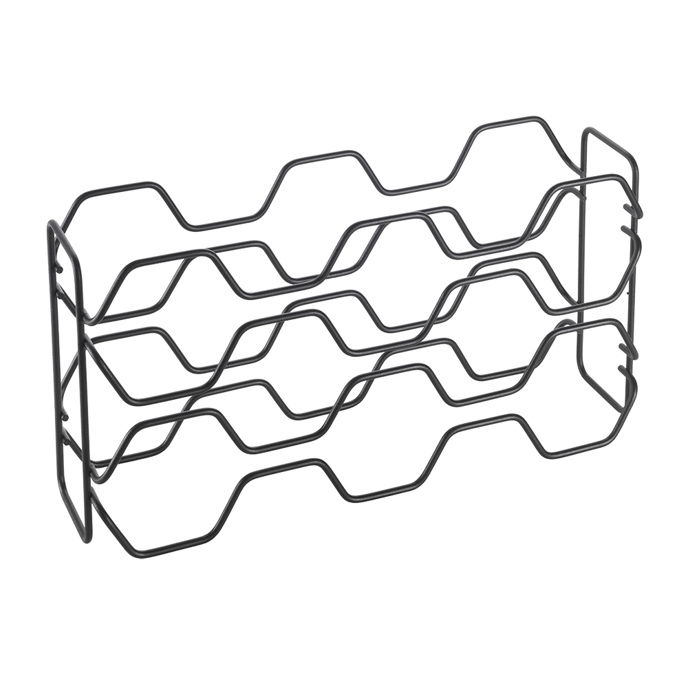 Veiniriiul seisab stabiilselt igal tasasel pinnal ning selle matt must viimistlus lisab sisekujundusele elegantset tööstuslikku ilmet. Tugev metallkonstruktsioon on kaetud TouchTherm kattega, mis muudab riiuli roostekindlaks, löögikindlaks ja antistaatiliseks.