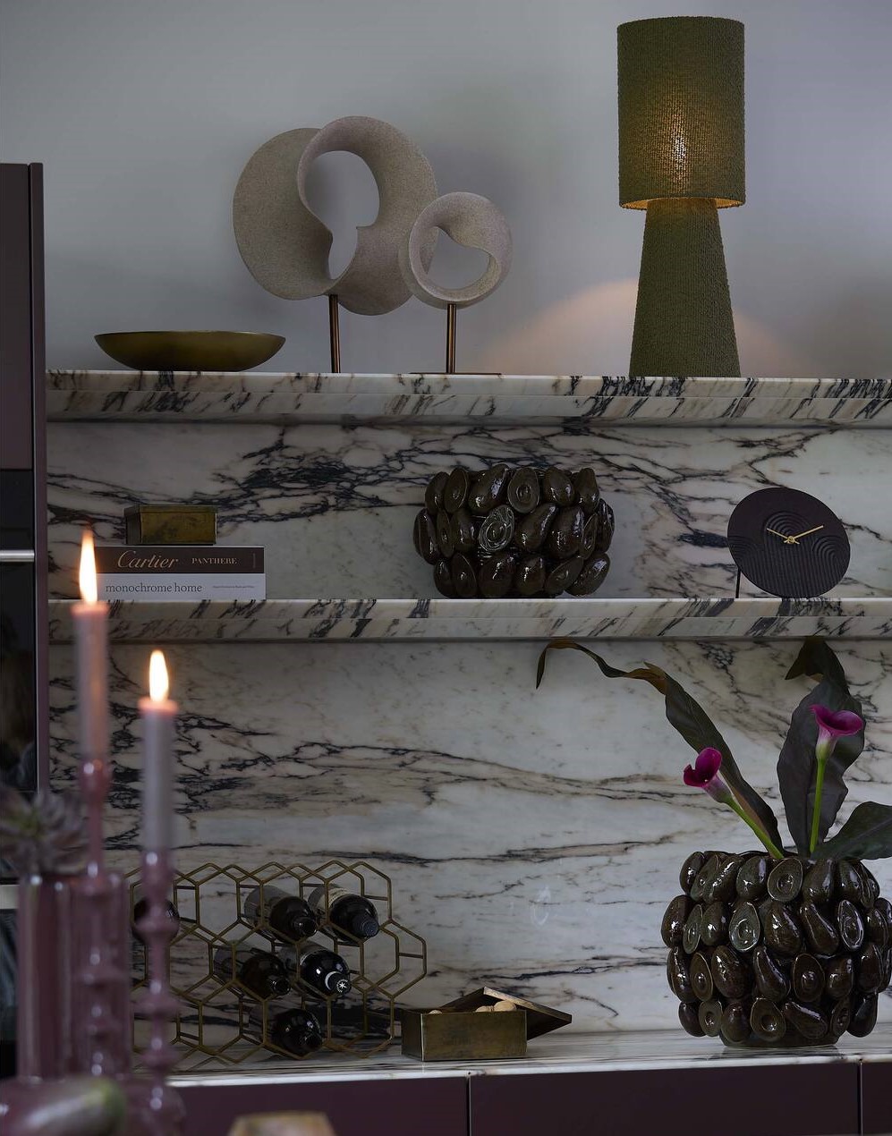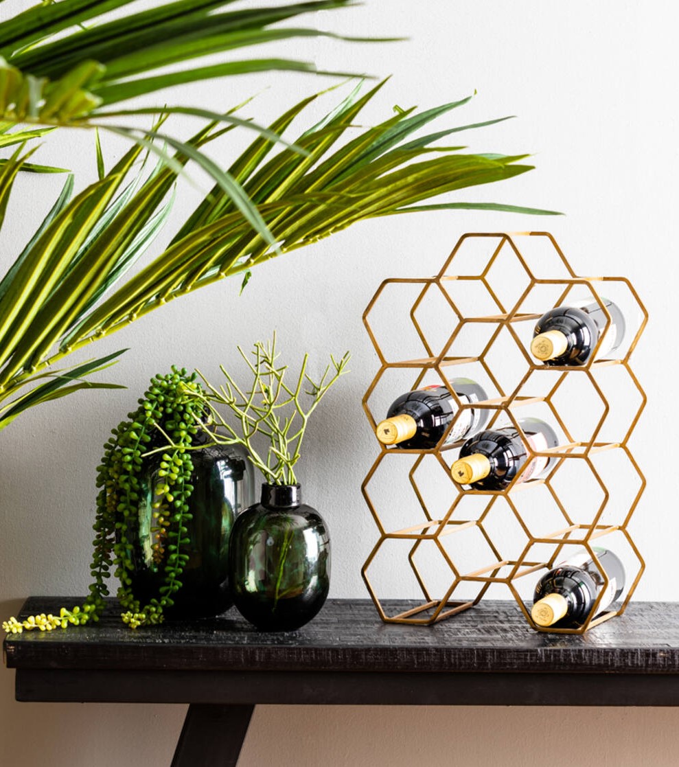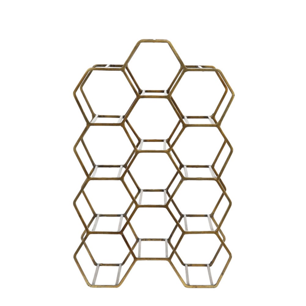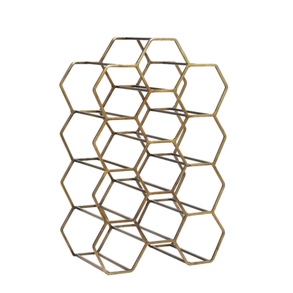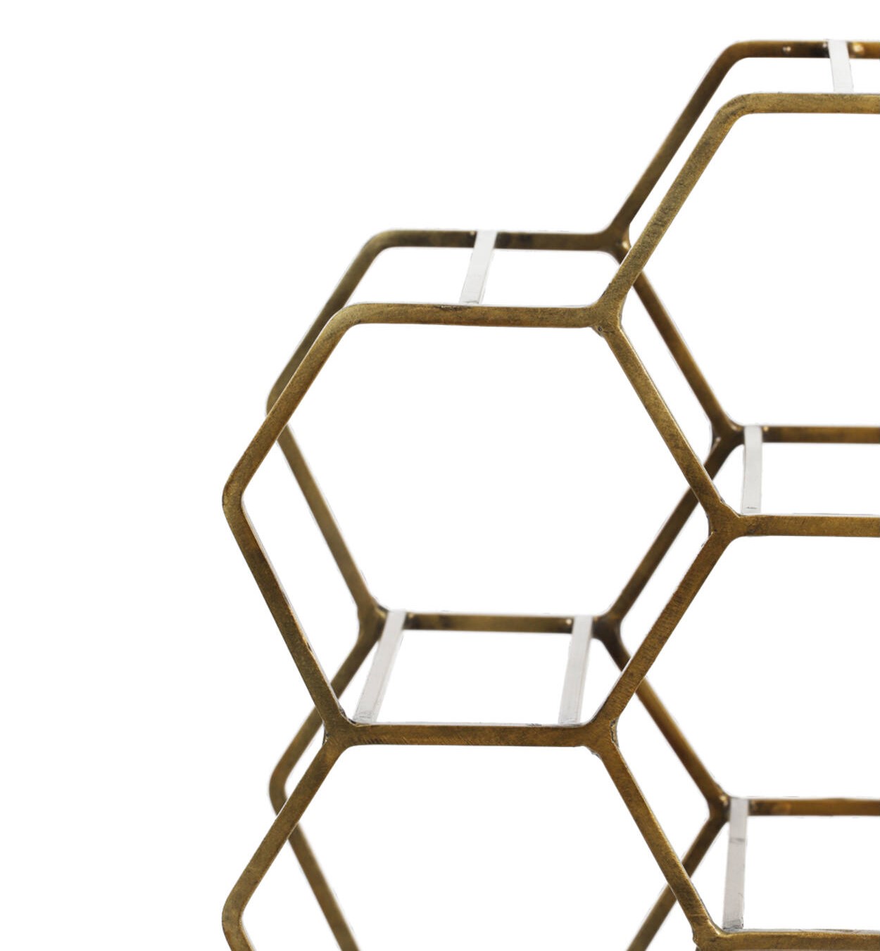 Kärjekujulise struktuuriga metallist veiniriiul Salbris mahutab kuni 12 veinipudelit. Antiikpruuni tooniga kuusnurksed pesad annavad riiulile skulptuurse ja modernse ilme, muutes selle nii praktiliseks hoiustamiseks kui ka interjööri kaunistavaks elemendiks.