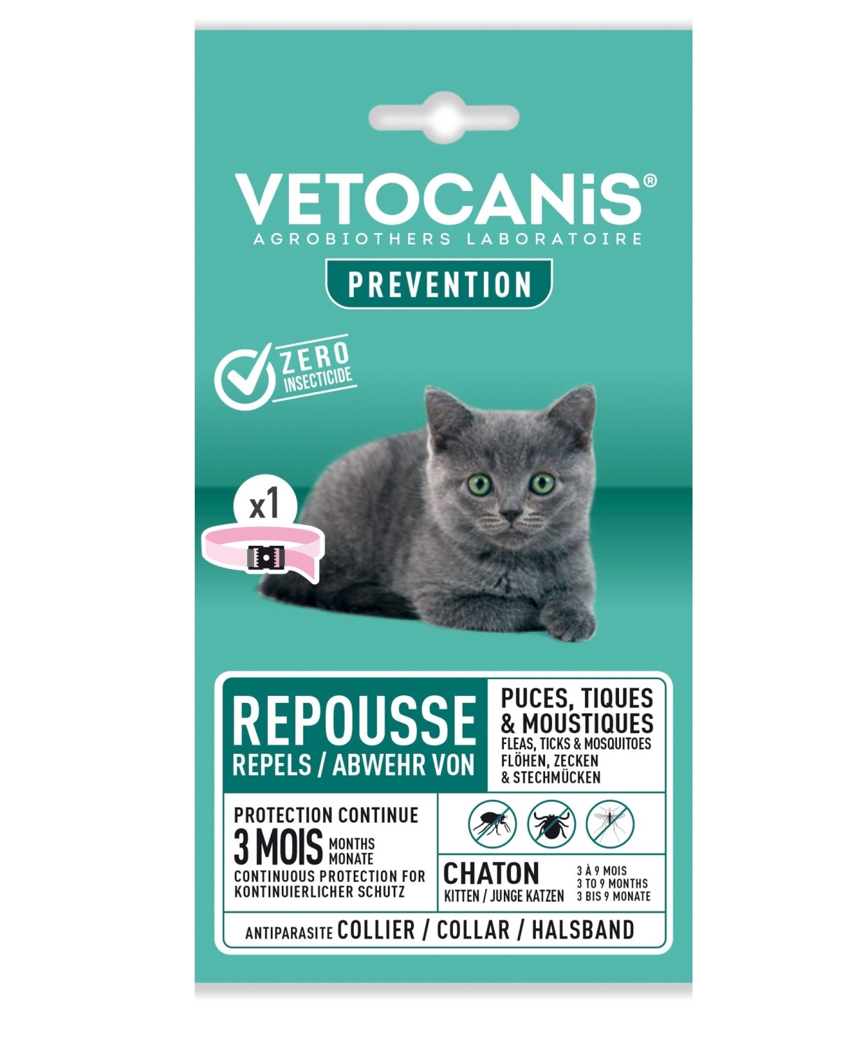Vetocanis parasiiditõrje kaelarihm kassipojale – kaitse kirpude, puukide ja sääskede vastu kuni 3 kuud. Veterinaararsti järelevalve all välja töötatud kaelarihm sisaldab looduslikke Margosa ja Lavandini ekstrakte, mis tõrjuvad tõhusalt kirpe, puuke ja sääski enne nende hammustamist. Veekindel ja vastupidav kaelarihm pakub kassipojale katkematut kaitset kuni 3 kuud.