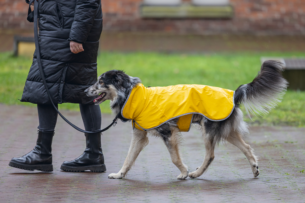 Jope saab hõlpsasti selga panna, viies rihma kõhu alt läbi ja klõpsates seda seljale. Ülaosas olevat veekindlat tõmblukku saab avada, nii et saate kinnitada koera jalutusrihma kaelarihma või koerarakmete külge.