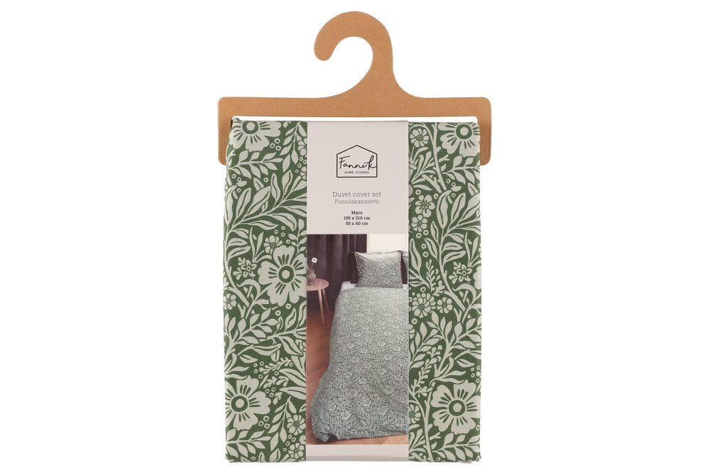 Hannele Kiviniemi disainitud komplekt sisaldab tekikotti ja padjapüüri. Kvaliteetne materjal vastab Ökotex-standardile, olles vaba kahjulikest ainetest ning taludes hästi kuni 60-kraadist masinpesu.
