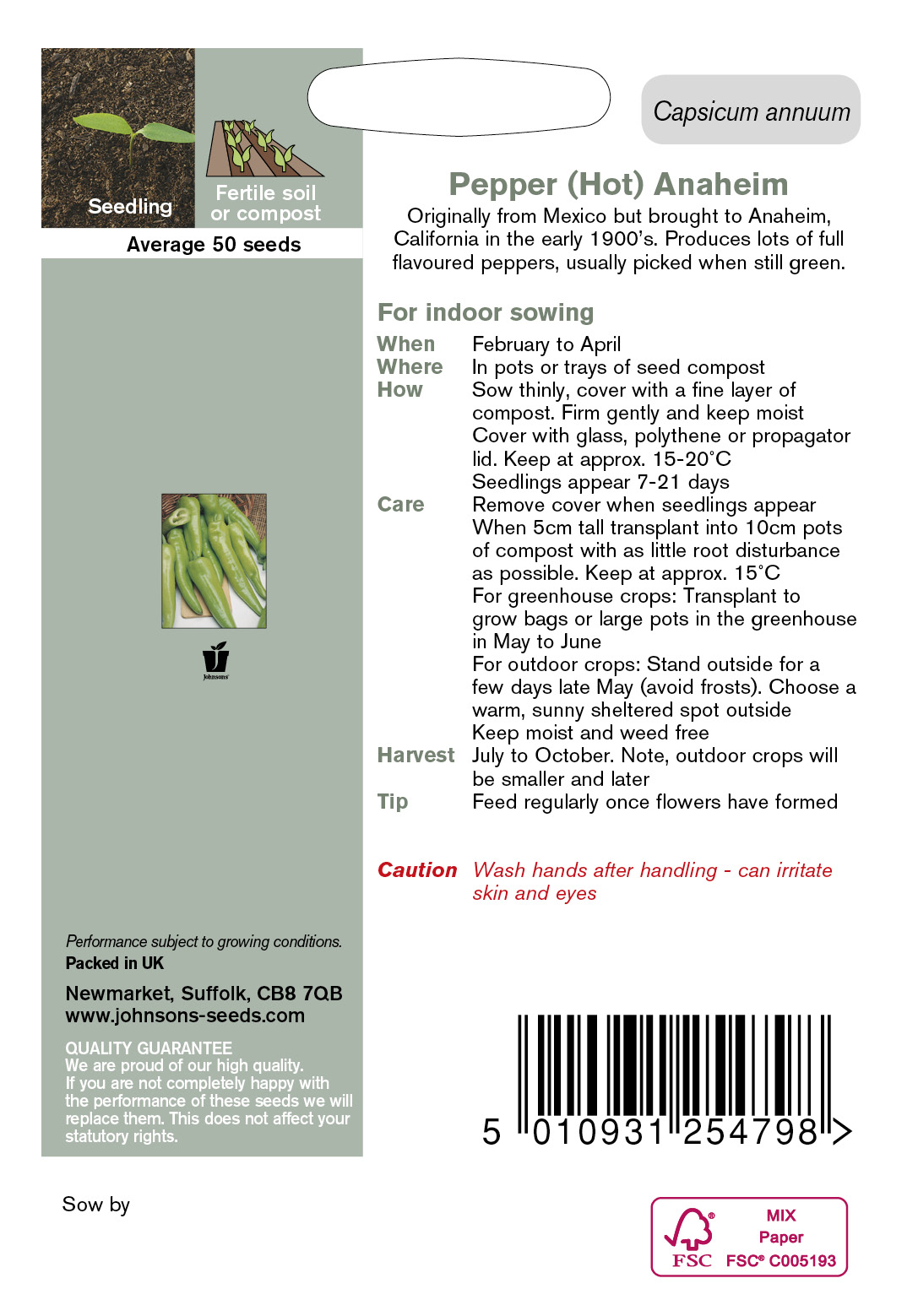 Köögiviljaseemned Vürtspaprika ‘Anaheim’ 50s